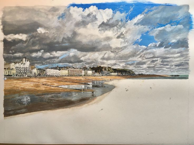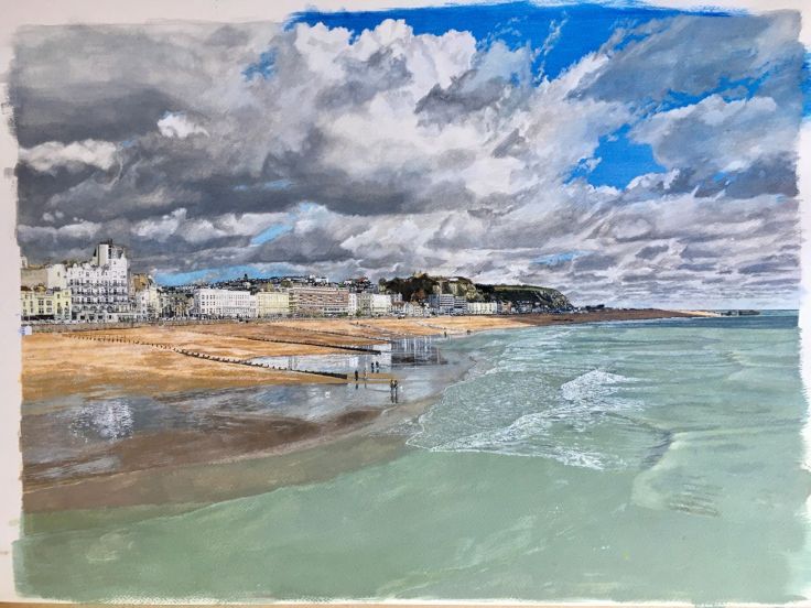 Read the rest of the article and the steps I took to paint my Hastings watercolour (below) online at Painters Online – Click HERE