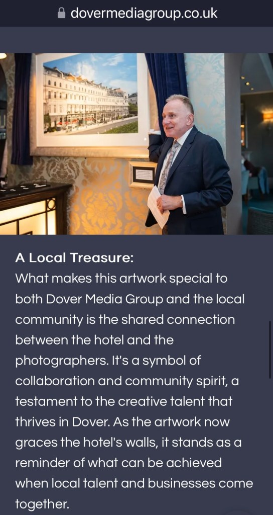 My Dover Marina Hotel & Spa painting is, as DMG’s Jodie Lingard says, a great example of the collaboration between Dover photographers, myself and the local business community, and I am thrilled and humbled by the support it’s received.